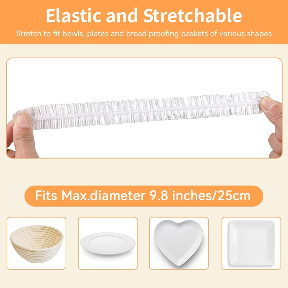 - Elastic and Stretchable: These plastic food covers have elastic edges that cand be stretched to fit a variety of bowls and plates with size up to 25cm/9.8 inches in diameter, and the elastic opening is perfect for keeping your dishes and plates securely covered.
